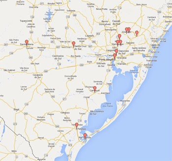 Clique no mapa abaixo para ver os locais que receberam Henrique Schneider em 2013: